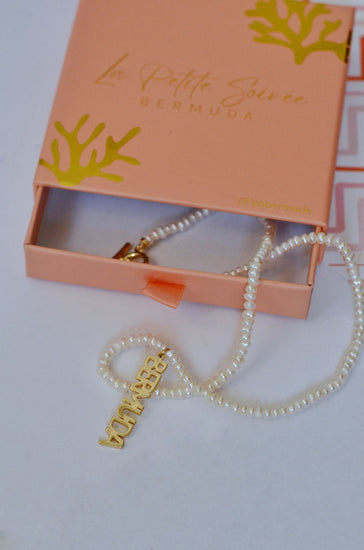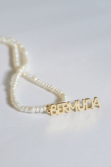 Our Bermuda Pearl Necklace is made for everyday beauty with just the right touch of bold. This 16-inch strand features luminous natural pearls, an 18K gold-plated toggle clasp, and a striking "BERMUDA" charm—making it a meaningful piece that carries the spirit of the island wherever you go.